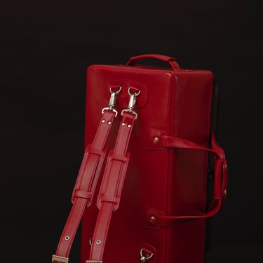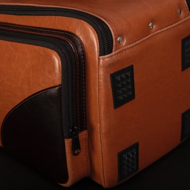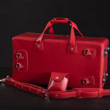 The Case model is the most rigid option in our collection, designed in the form of a suitcase. It is made of plywood or polycarbonate and padded inside with polyurethane foam. Each case features a large external pocket that comfortably fits a laptop or iPad. It comes with backpack straps and a shoulder strap, as well as a mouthpiece case (the version with wheels does not include backpack straps).